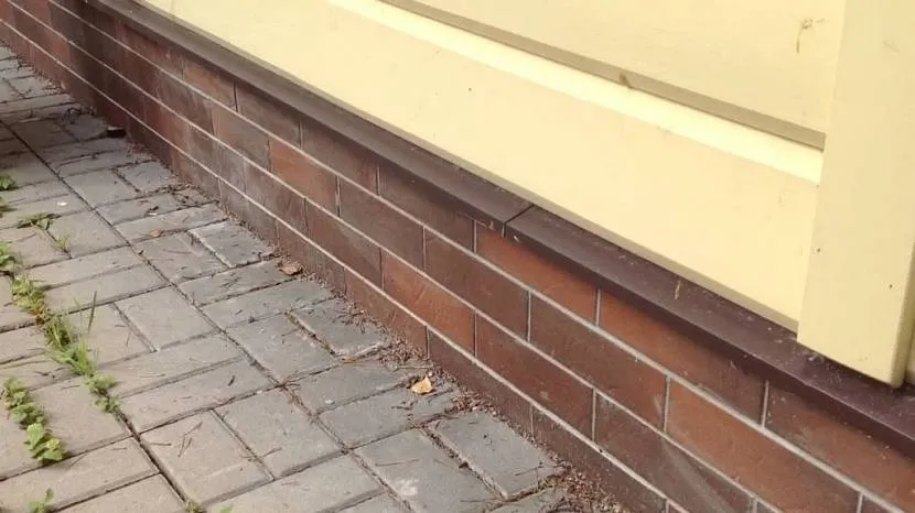 - Западающий — самый простой в эксплуатации вариант. За счёт конструкции цоколя нет необходимости дополнительно устанавливать сливы, поскольку он защищён от воды и снега стеной, выступающей над ним. Такие цоколи проще защитить от агрессивного воздействия окружающей среды, а также от механических повреждений. Если рассматривать этот тип с точки зрения дизайна, то западающие цоколи выглядят наиболее привлекательно.