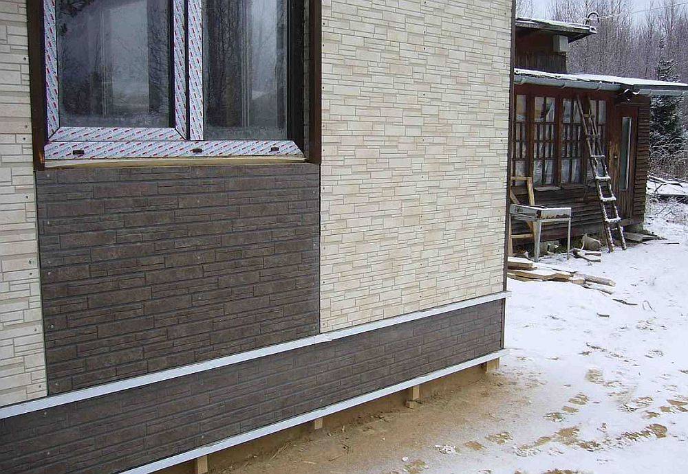 Один из возможных способов отделки – облицовка цоколя дома пластиковыми панелями.