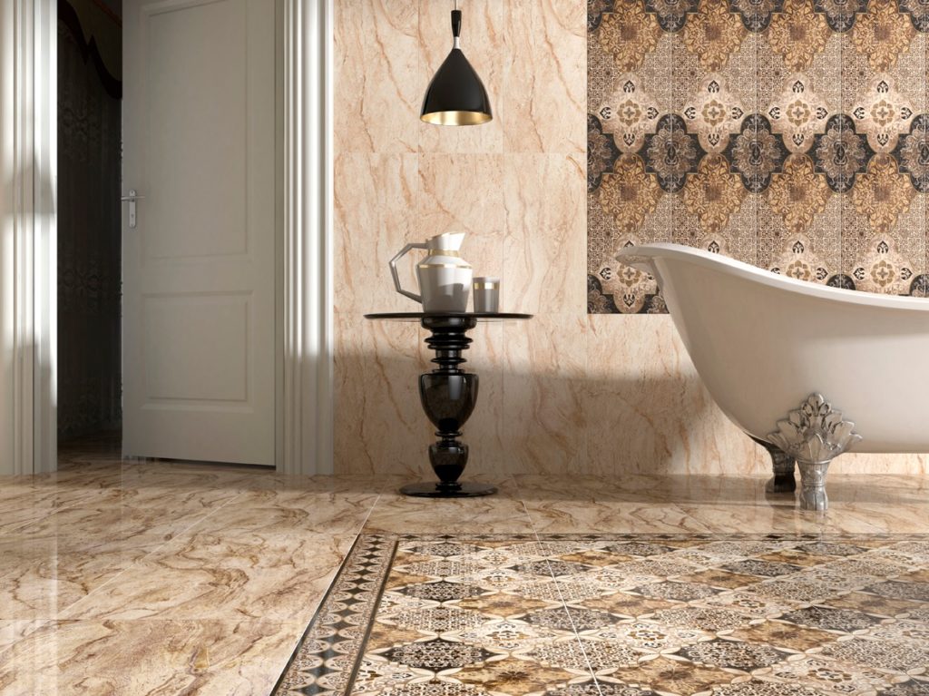 Эмалированная керамическая плитка (монокоттура), изготовленная из смеси различных видов глины с добавлением других натуральных компонентов, используется для укладки на все типы поверхностей. Стойкие типы этого материала применяются в качестве напольного покрытия
