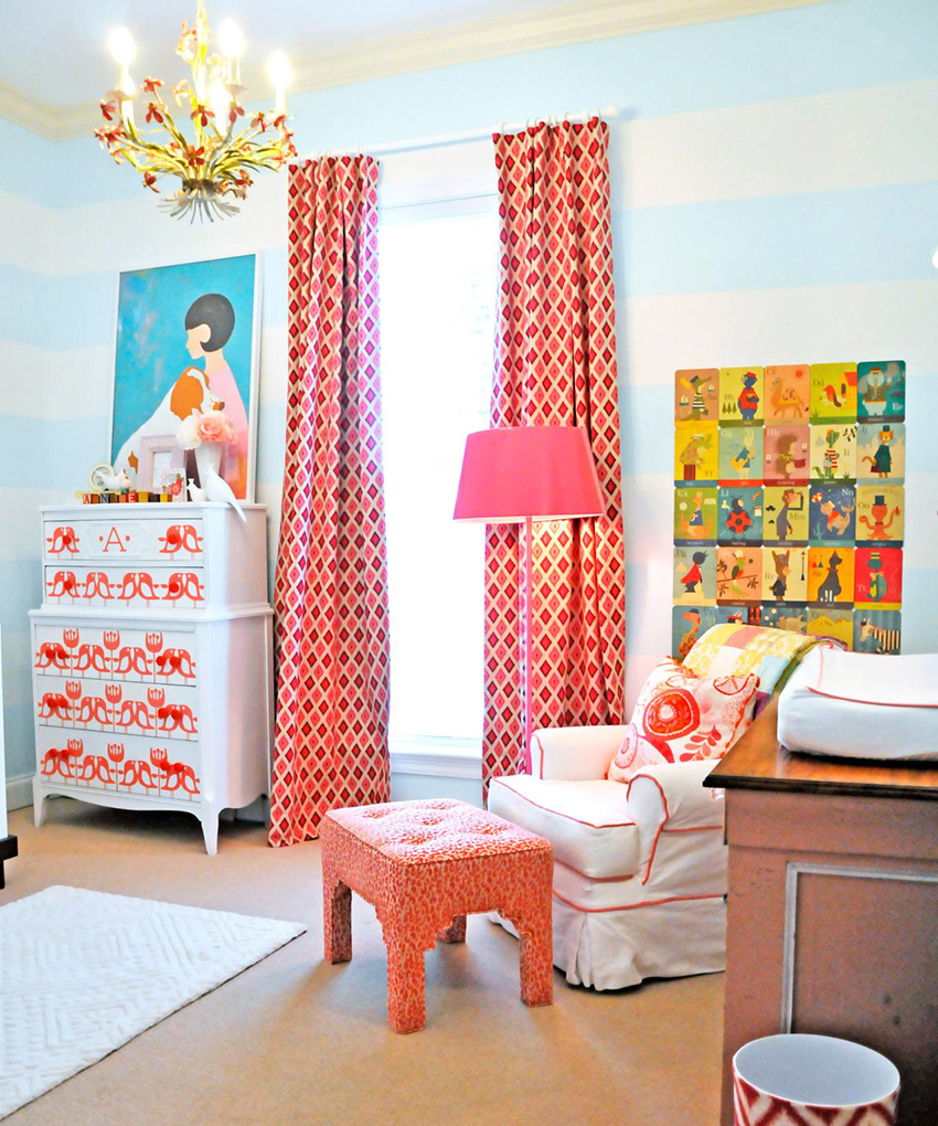 Так, обои в горизонтальную полоску зрительно удлиняют детскую, а в вертикальную полосу — сделают комнату выше.