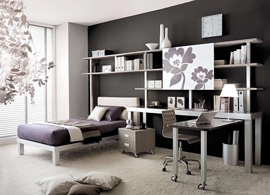 Такое решение отлично подойдет подростку старшего возраста, так как минимализм можно легко поменять и не потребуется капитальная переделка.