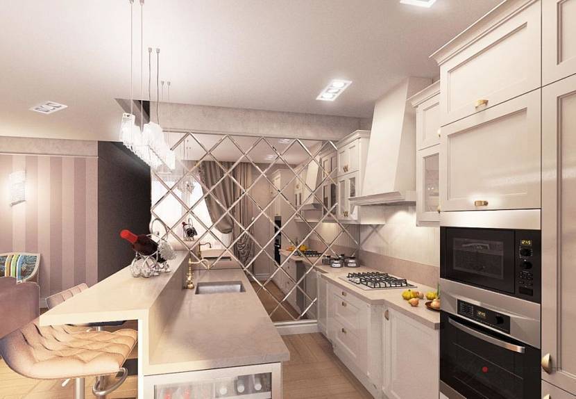 Кухня с зеркальной плиткойИсточник bigl.ua