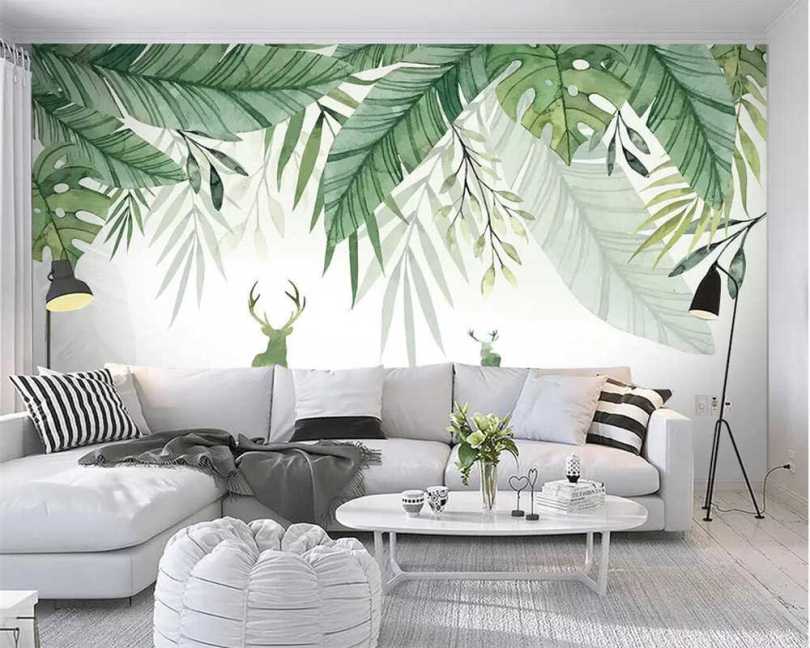 Зеленые обои: цвет лета и весны, ассоциируется с природой, впишется в интерьеры в эко-стиле, прованс и кантри. Он создает спокойную атмосферу в зале располагающую к отдыху. Сочетается с коричневым и белым.