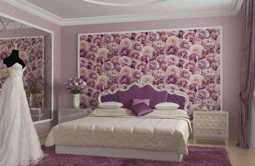 - гламурные оттенки обоев (розовые или соединяющие несколько цветов), а также кружевные рисунки;
