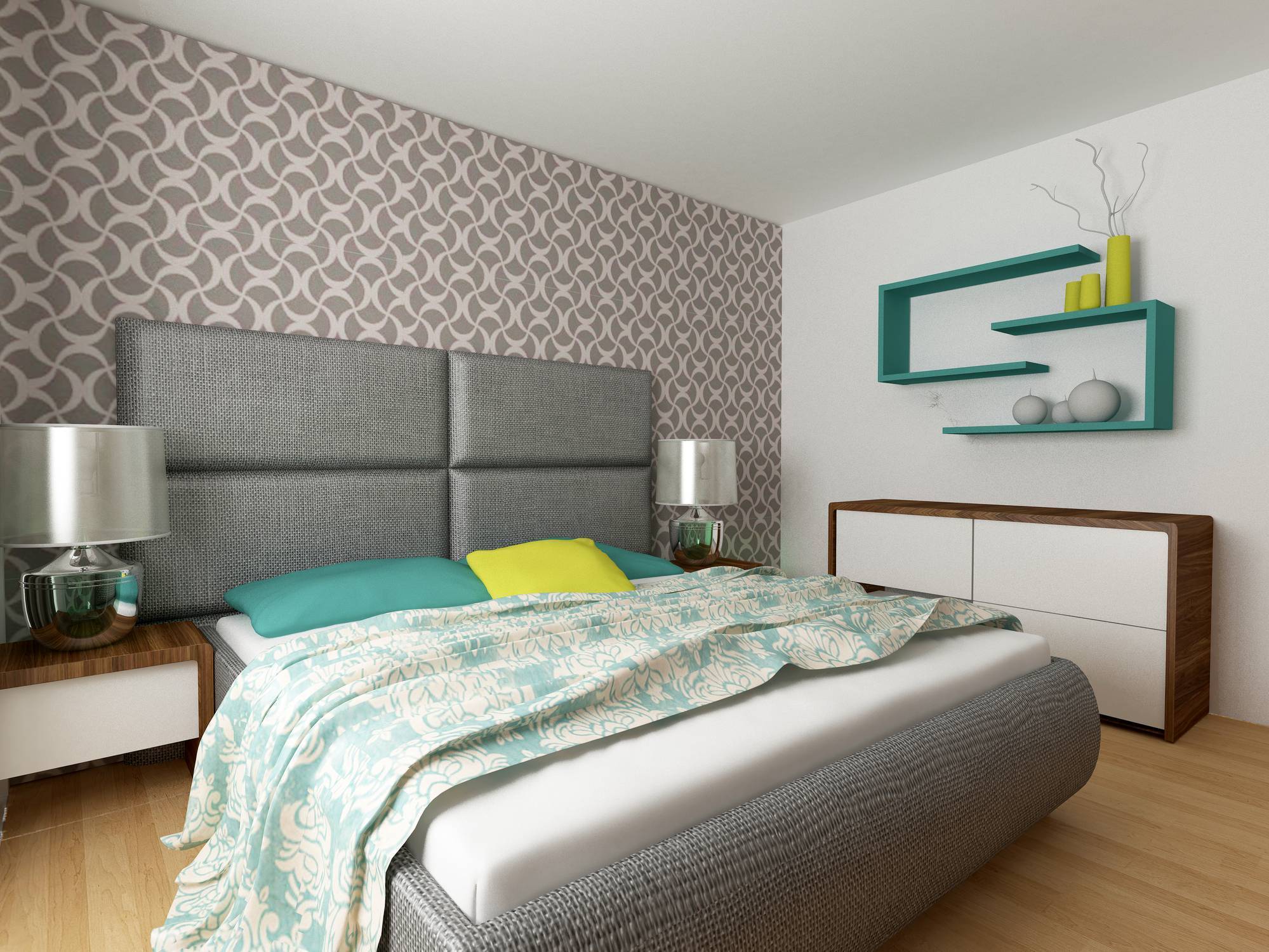 В современном дизайне можно поэкспериментировать с цветами и способами покраски. На светлый фон могут ложиться различные узоры, нанесенные кистью или при помощи трафарета. Современный дизайн часто сочетает в себе разные оттенки и материалы.