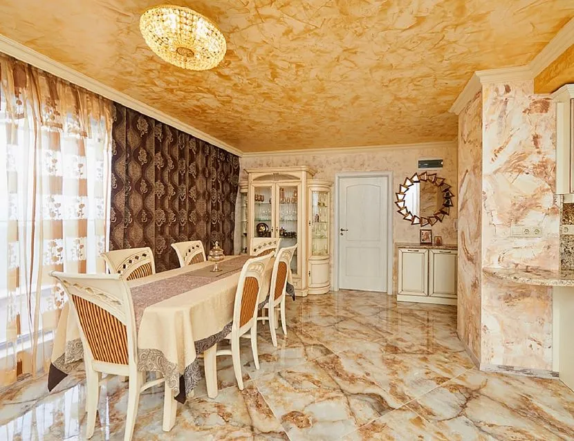 Декоративную венецианскую штукатурку можно использовать для внутренней отделки стен в интерьерах разных комнат: кухни, ванной, прихожей, гостиной, спальни. Рассмотрим подробнее каждый из вариантов.