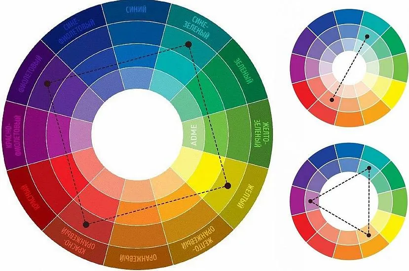 Чтобы тебе было легче подобрать комбинацию, воспользуйся цветовым кругом. А если хочешь создать яркий и активный дизайн – выбери тона из противоположных секторов. Для спокойной атмосферы нужно подобрать соседствующие оттенки.