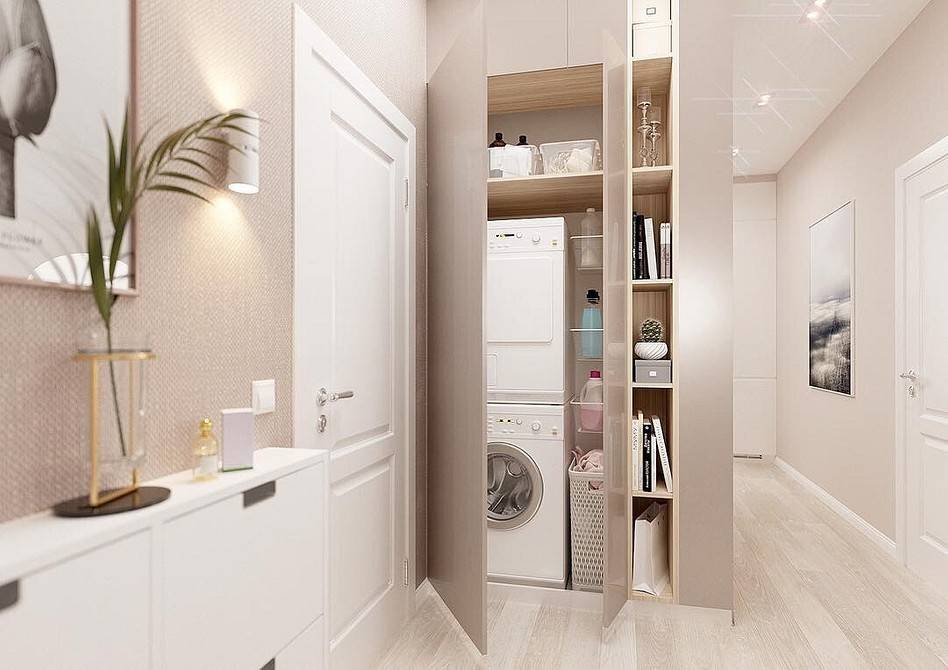 Настроение коридора зависит от цветовой температуры выбранных тонов. Уютный, домашний интерьер получится при соединении светлого грибного с теплым персиковым. Сочетание холодного стального с нейтральной пыльной розой привнесет в дизайн нотки роскоши.