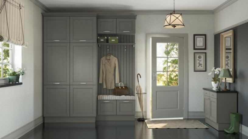 Прихожая в сером цвете раскроется при сочетании с базовым светлым. Спокойный, лаконичный дизайн по элегантности напоминает оформление дворцов. Настроение интерьера зависит от выбора доминирующего оттенка.