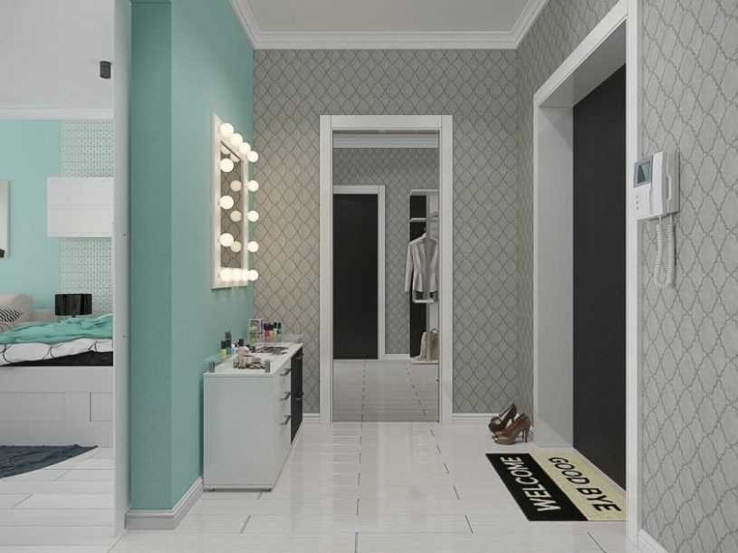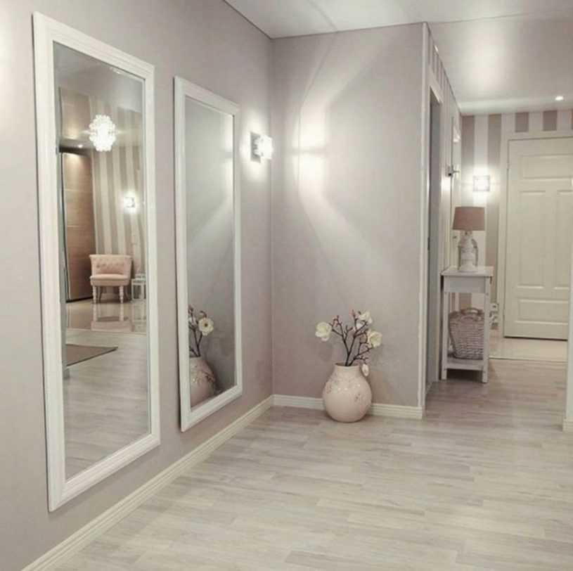 Светлые обои и зеркало во весь рост зрительно увеличат пространство.