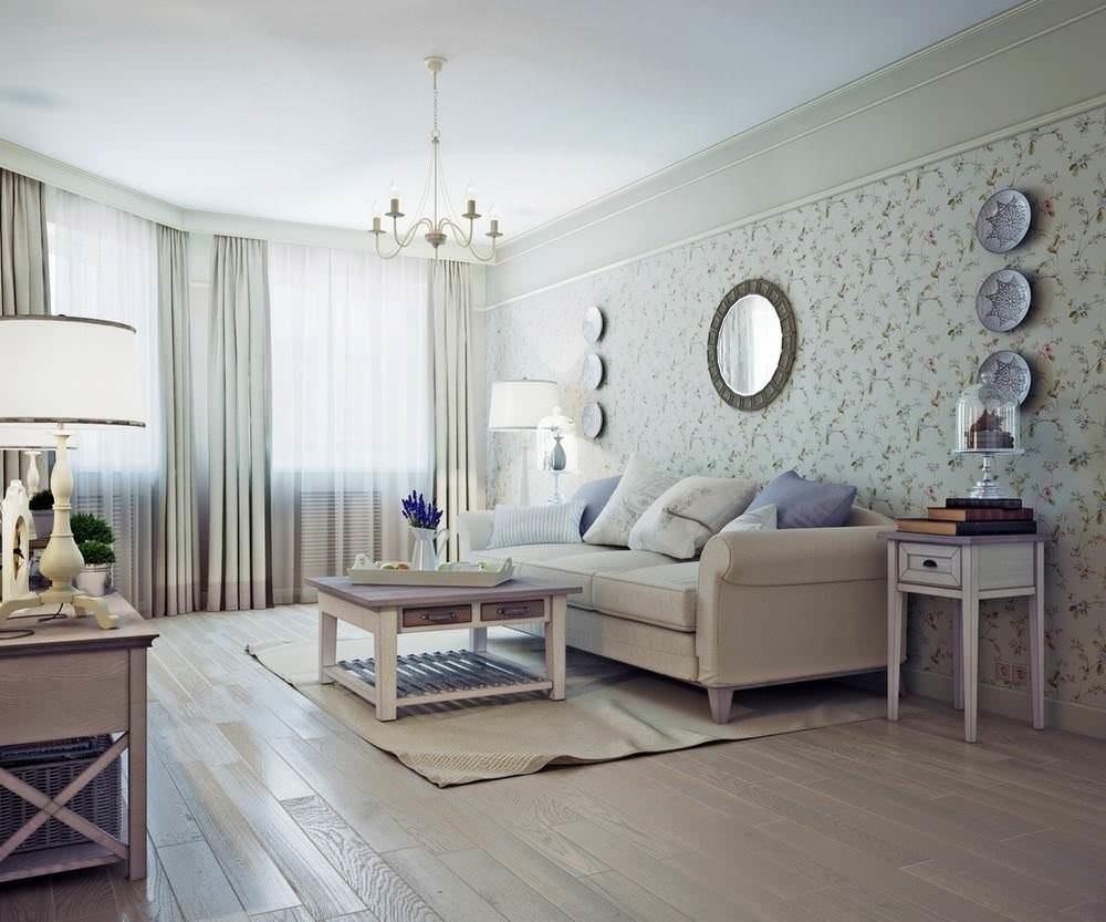 Гостиная комната в стиле прованса должна быть максимально наполнена солнечным светом