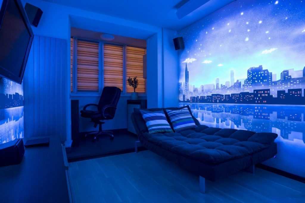 Выбирая дизайн стильных обоев с фосфорицирующими элементами, необходимо учитывать, что в комнате должно быть соответствующее освещение.