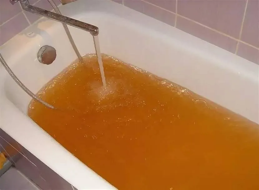 - желтоватый или бурый цвет воды, который уходит при отстаивании;