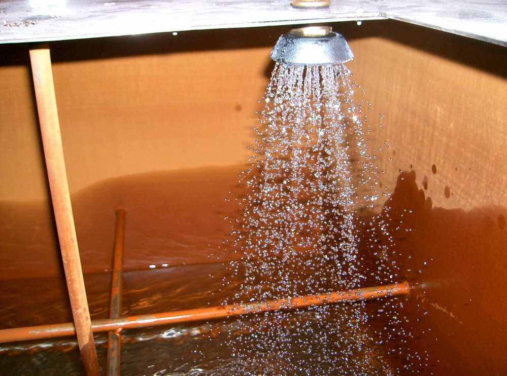 Данный метод позволяет убрать железо из воды путем воздействия на нее кислорода, содержащегося в воздухе. Осуществить аэрацию воды можно двумя способами: