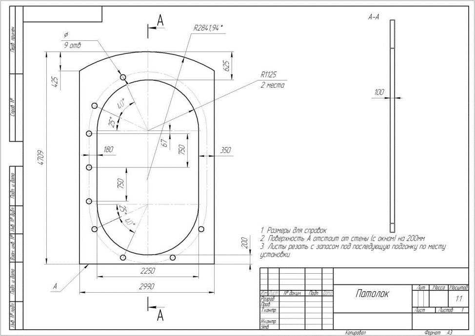 Особенно важно правильно вычертить дуги и кривые линии, поскольку точность их сопряжения и правильность изгиба крепежного профиля сильно влияют на конечный вид изделия