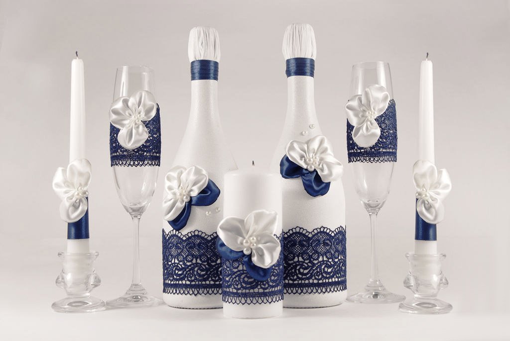 Итак, как украсить бутылки шампанского на свадьбу: