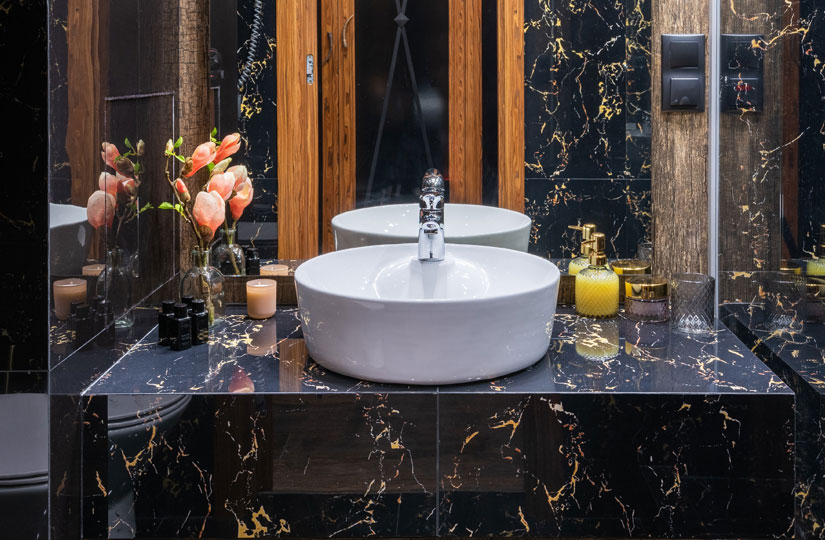 - Ванна. В этом помещении вообще не предусматривается источник дневного света, поэтому растения в ванной обычно гибнут. Чтобы сделать её более оживлённой, дизайнеры рекомендуют использовать неживые цветочные композиции вокруг зеркала или возле раковины.