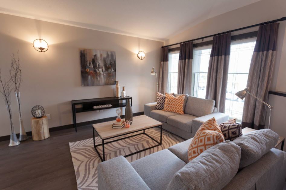 Оттенки персикового, желтого, салатового, кофейного, нежно-розового помогут сделать пространство, куда редко заглядывают солнечные лучи, светлым, теплым и ярким. Лучше всего следовать цвету обивки мебели и подбирать соответствующий цвет для штор