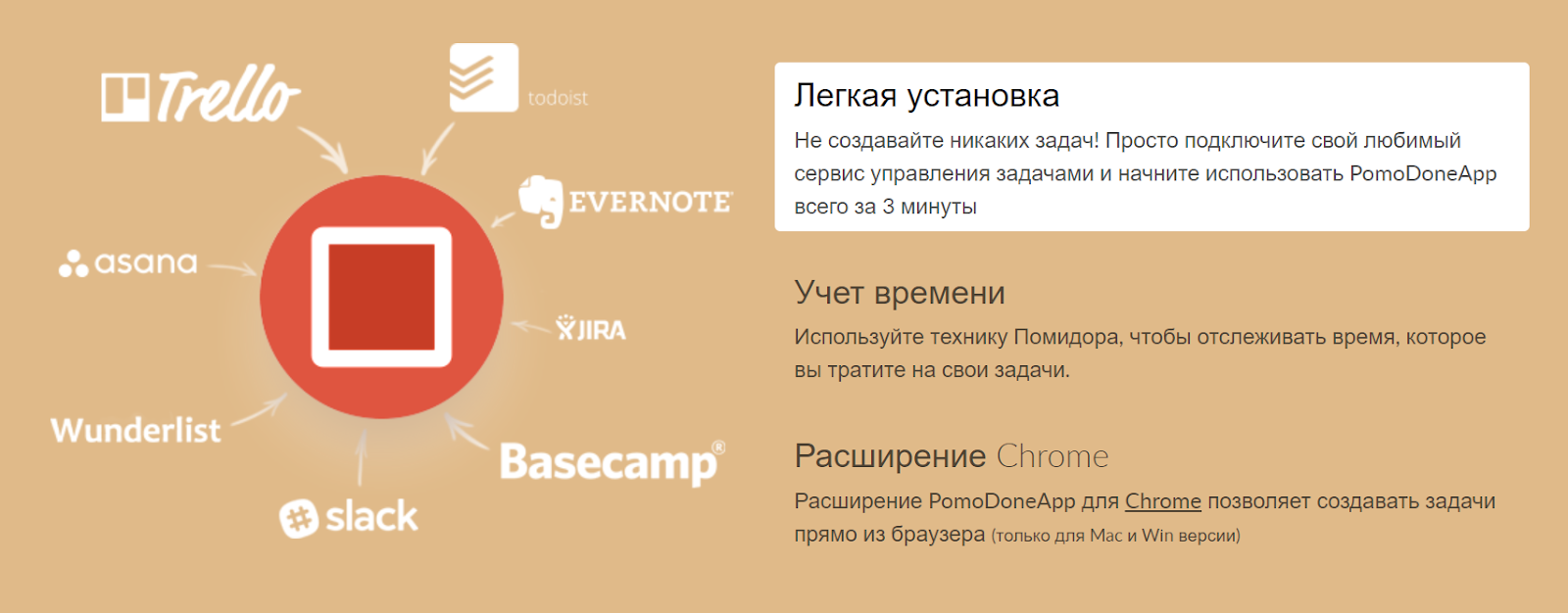 PomoDone интегрируется со всеми популярными сервисами управления проектами