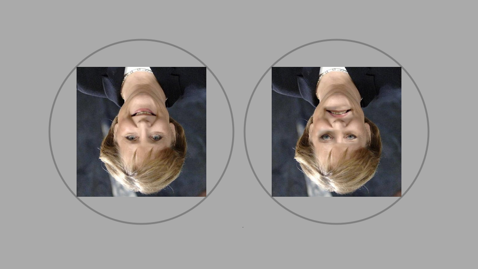 Между изображениями Ангелы Меркель на картинке выше нет почти никакой разницы, верно? Кажется, что на них она просто смотрит в разные стороны, и на том, что справа улыбка какая-то странная. Всё сильно меняется, если их перевернуть.