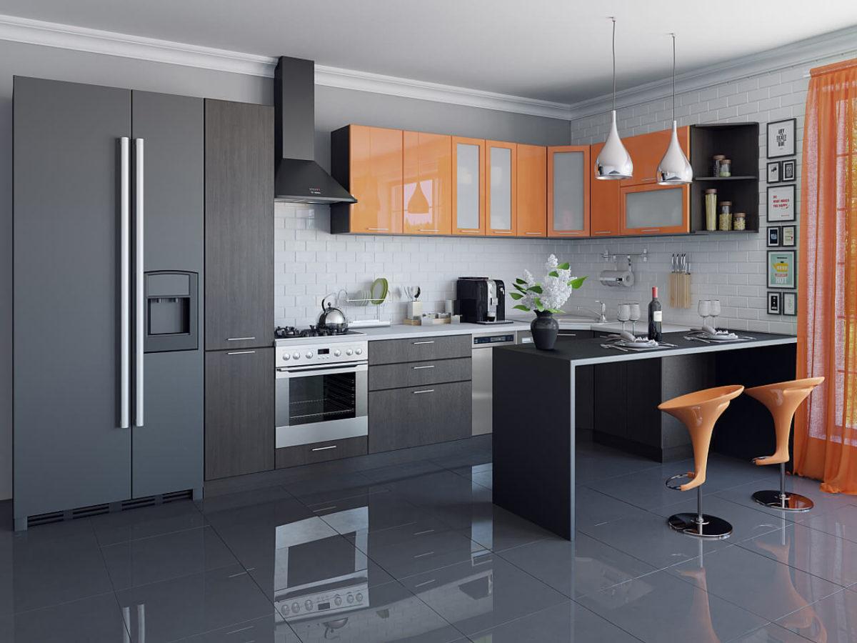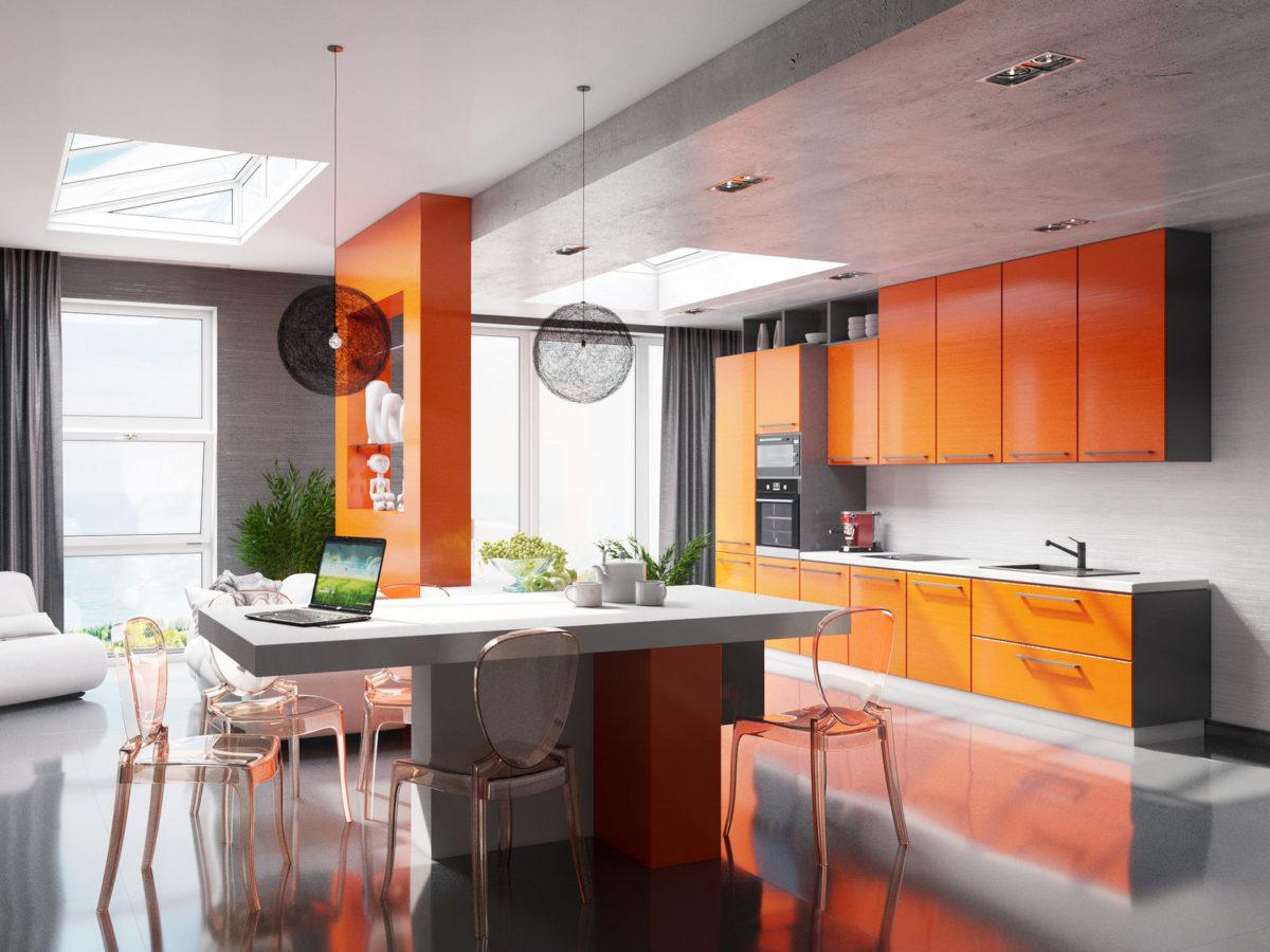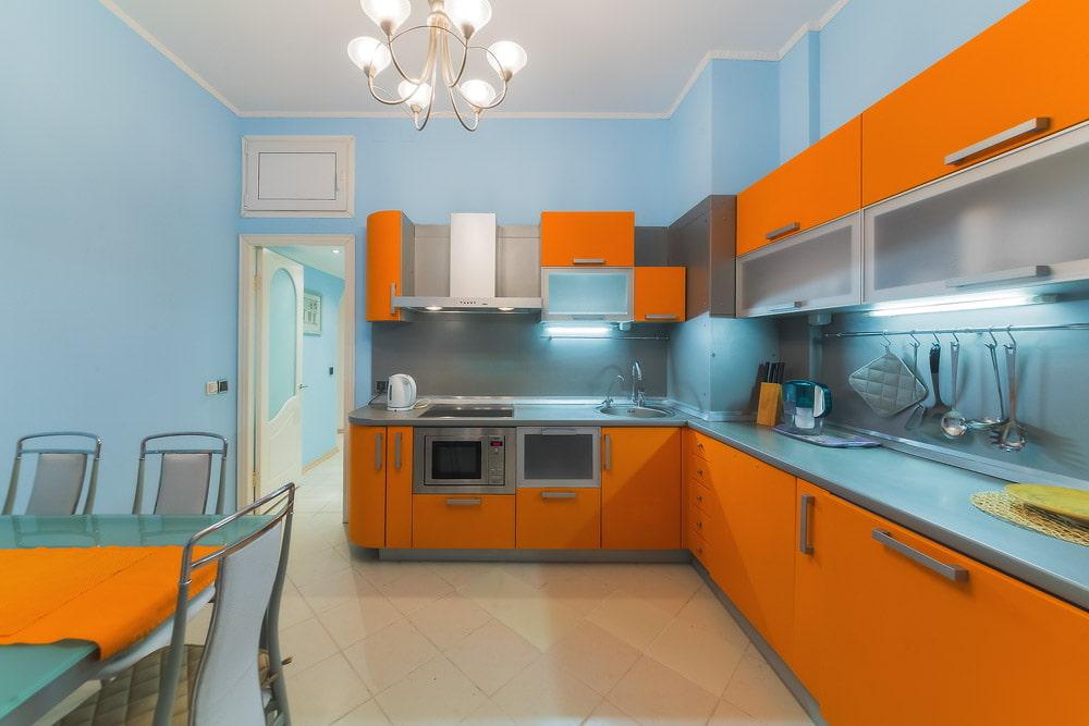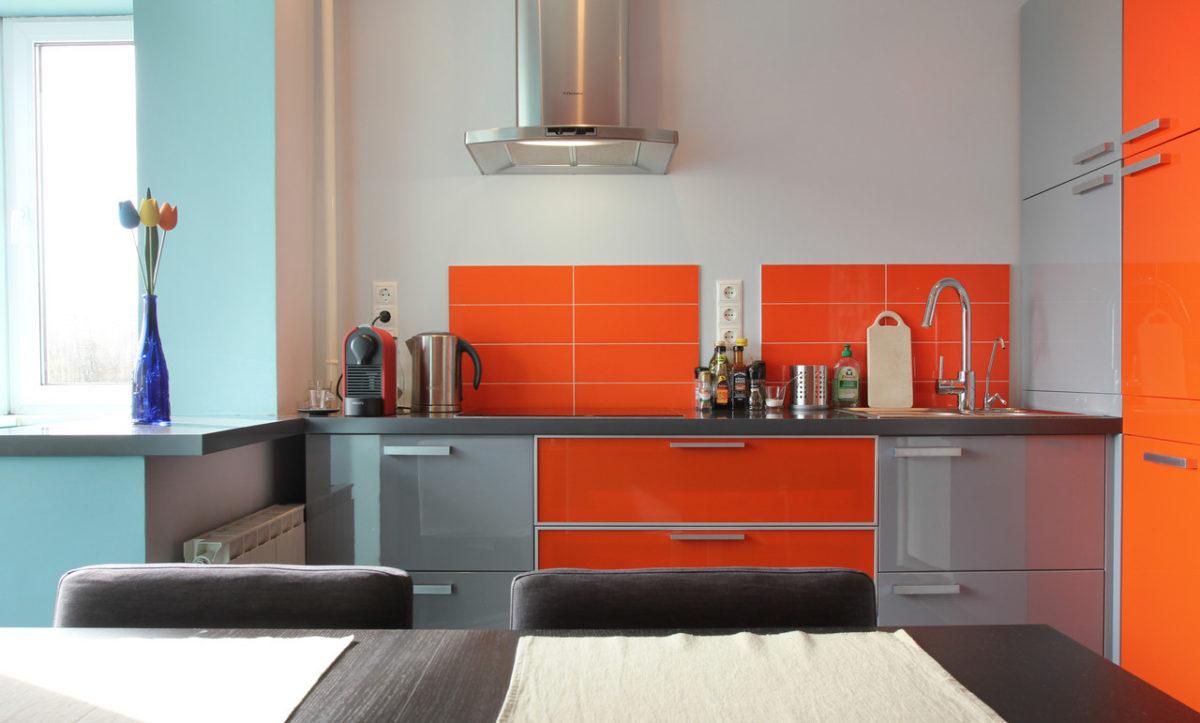 Сочетание холодного и теплого: кухня в оранжевых тонах