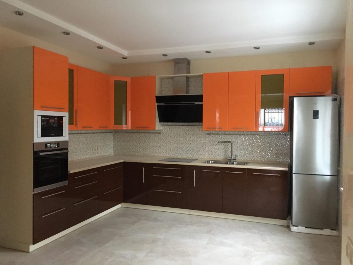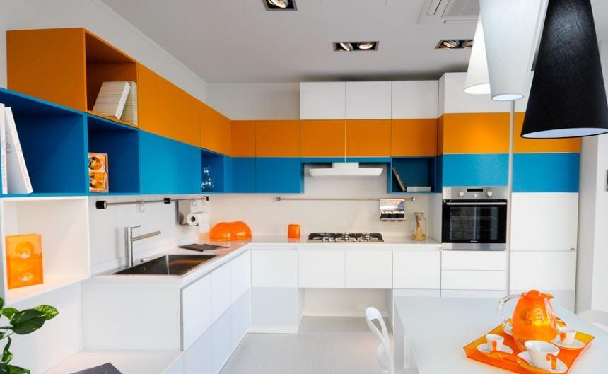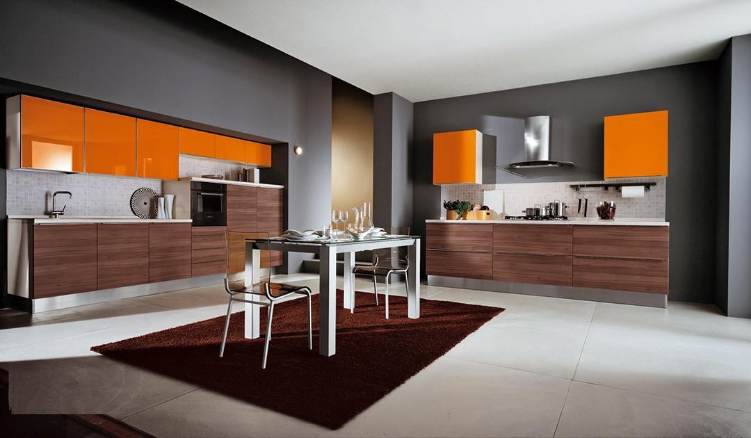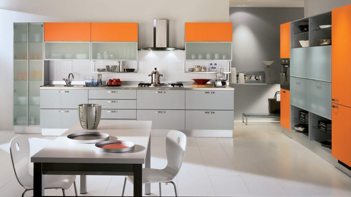 Сочетание холодного и теплого: кухня в оранжевых тонах