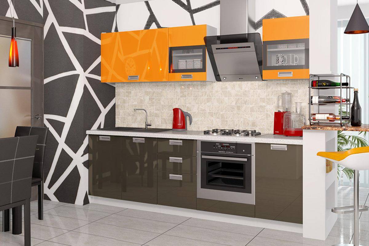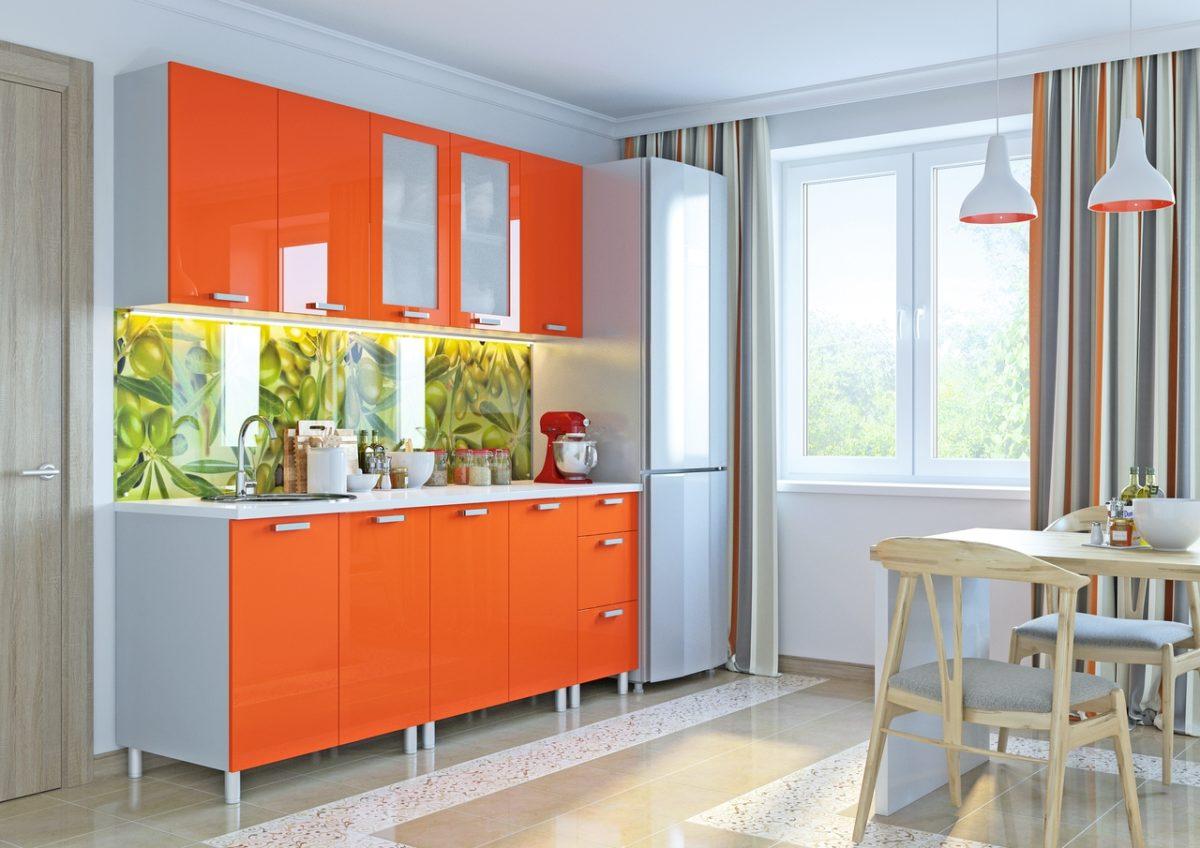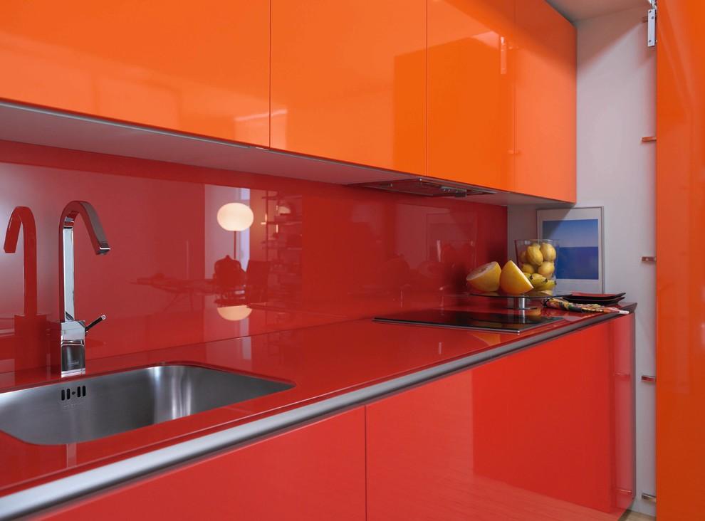 Фасады, как и «фартук», с помощью цифровой фотопечати могут поддержать любую тему и настроение. Например, ярко-оранжевый закат.