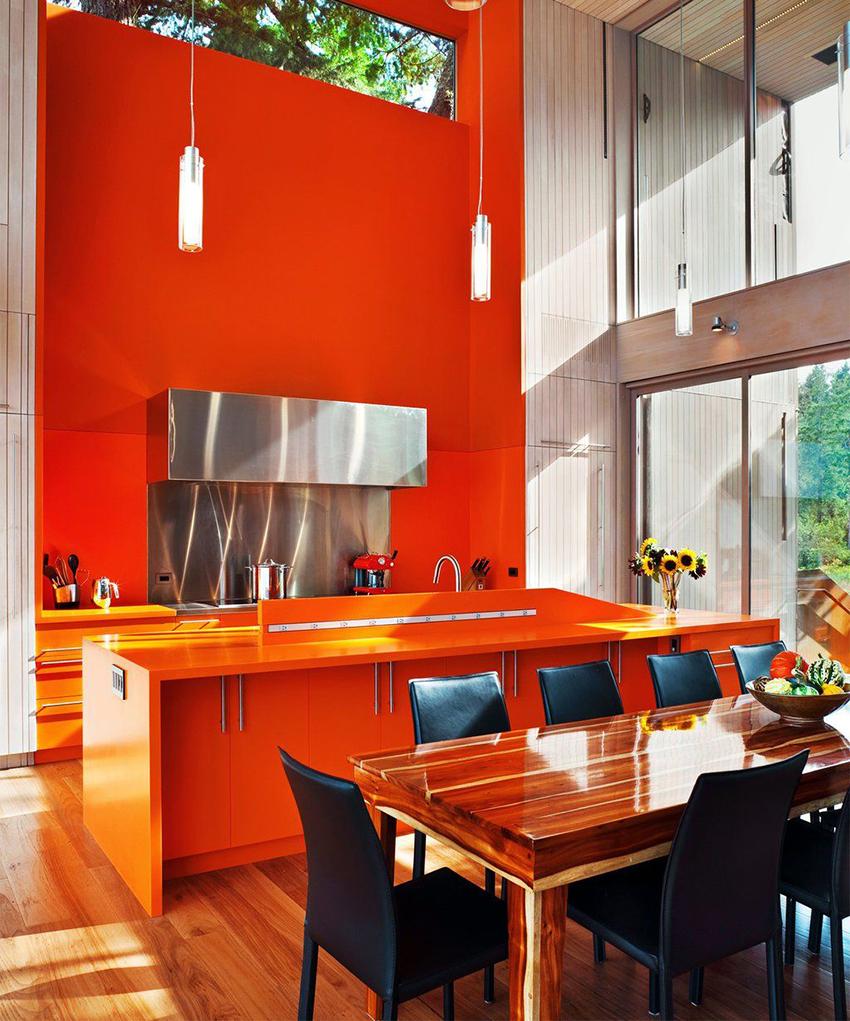 Если вы оформите только одну стену в оранжевом цвете, то получите почти тот же эффект