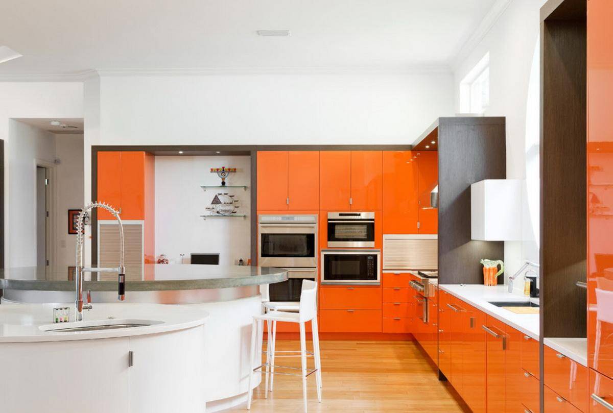 Что, как и с чем можно скомбинировать на яркой оранжевой кухне? Какие варианты и комбинации можно осуществить, придав оригинальность и уйдя от банальностей? Отвечаем, с массой примеров и фотографий.