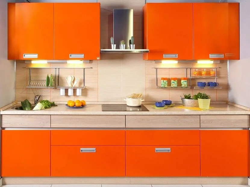 Чем более современный стиль вашей кухни, тем более чистые и насыщенные тона вы можете использовать при ее оформлении: морковный, апельсиновый, киновари, тыквенный и пр.