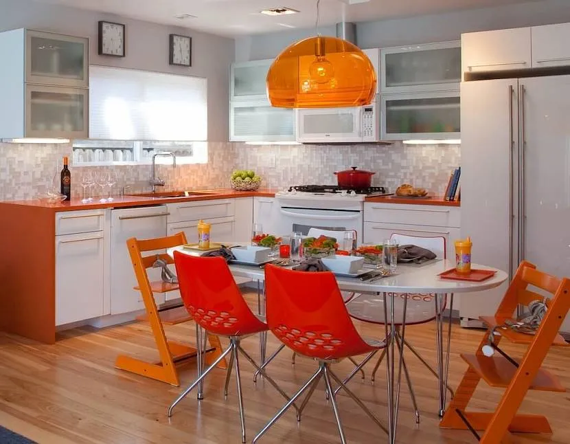 Поскольку семья собирается за обеденным столом, роль оранжевого оттенка в создании домашнего уюта сложно переоценить.