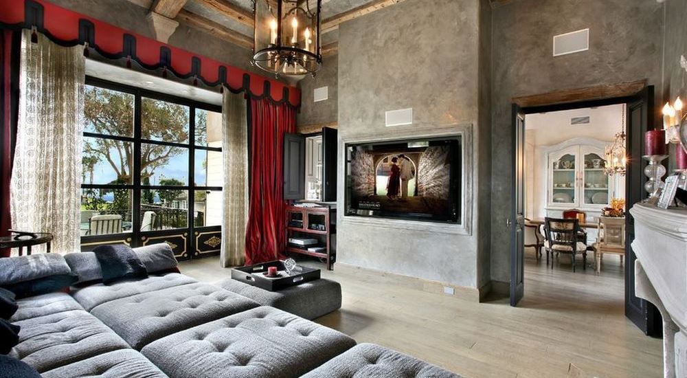 Готический стиль отлично подходит для создания шикарных гостиных с большим камином, тяжелыми коваными люстрами, коврами, зеркалами и тяжелыми шторами.