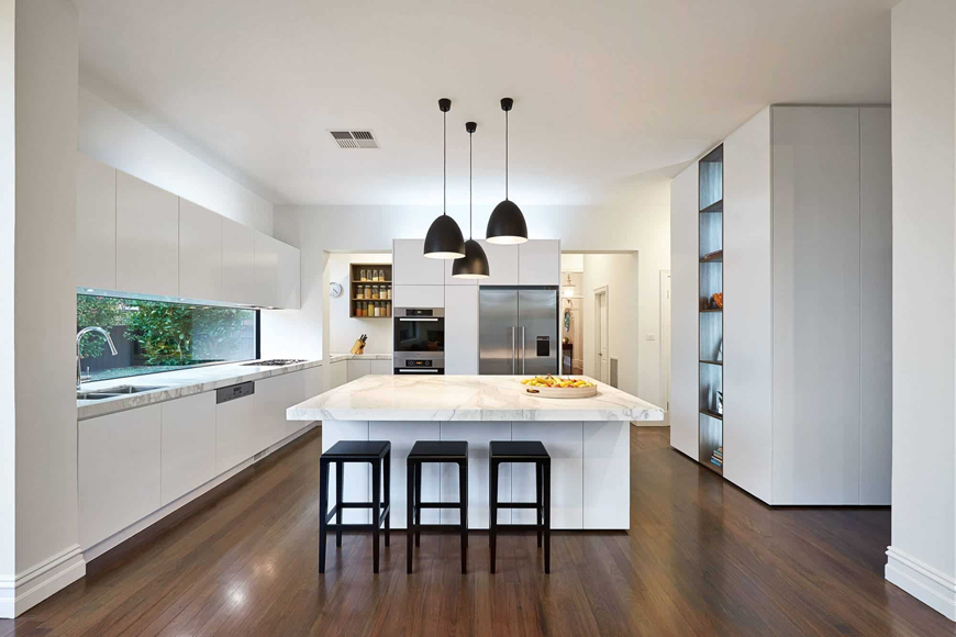 Но вам может понадобится несколько таких светильников, чтобы обеспечить достаточный уровень освещения. С их помощью можно сделать эффектное акцентное освещение или создать интересную световую композицию. Точечное освещение направлено вниз, поэтому будет выделять довольно локальную область, а нахождение на расстоянии от этой области может не дать яркого рабочего света. Поэтому, в качестве дополнительного элемента добавьте подвесные светильники или люстру, особенно если они обеспечивают теплое освещение с регулируемой яркостью.