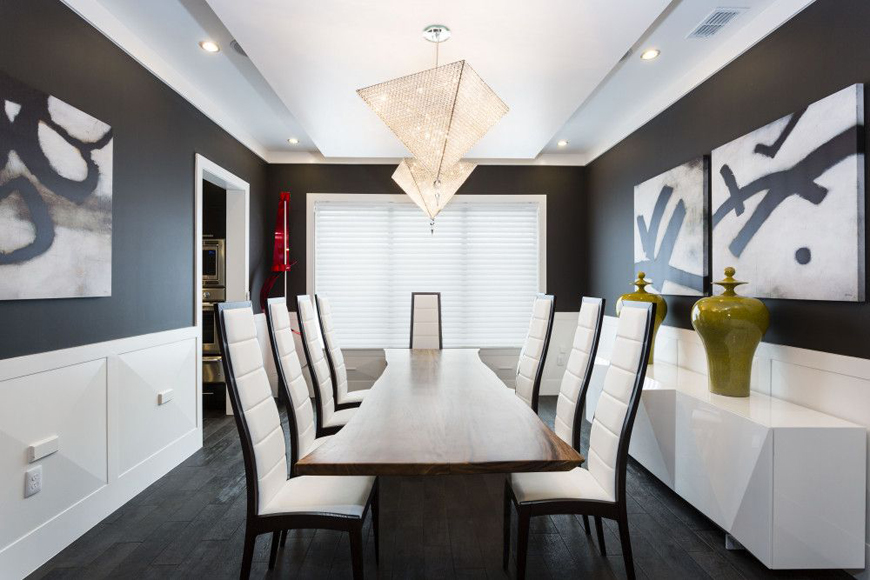 Над обеденным столом правильно было бы разместить отдельный источник освещения. И его форма должна соответствовать форме стола.