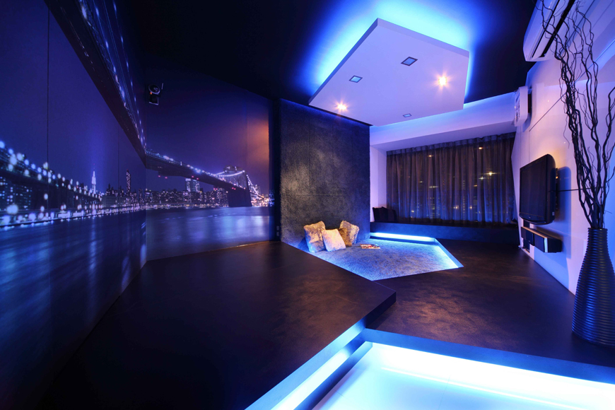 Вы можете использовать цветной свет в любом пространстве, но включать его по настроению. Для скрытого освещения используются светодиодные ленты или светодиодные модули. При изменении оттенка подсветки одна и та же область выглядит и ощущается совершенно по-разному; это преимущество технологии RGB. Вы можете создать цветную подсветку на потолке, стенах, полу, лестнице или отдельных предметах мебели; свет становится элементом оригинального дизайна. Самое главное, что нужно помнить, – не терять чувство меры.