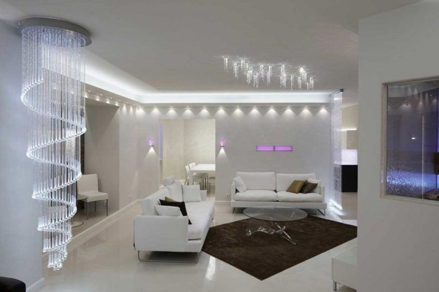 Более того, это здорово экономит расход электроэнергии, позволяет сформировать среду более равномерно. У вас не будет большого контраста между громоздкой люстрой, которая висит в центре зала и темными углами комнаты.