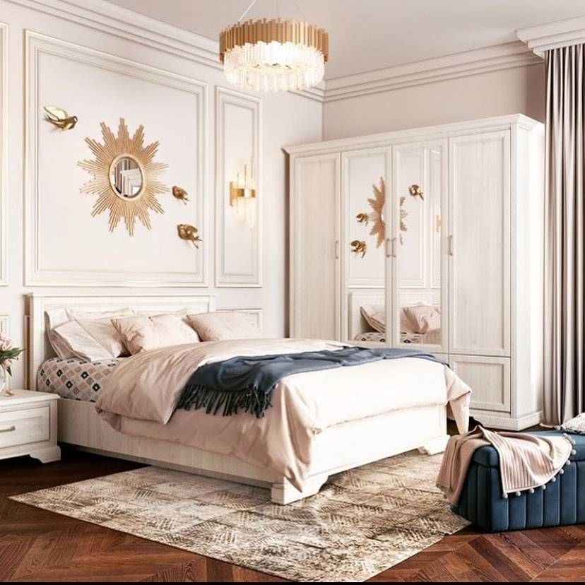 - Защитите себя от прямых лучей. Яркий светильник с абажуром открытого типа, бра с режущим глаза светом – любая ошибка изуродует обстановку в опочивальне. Остановите выбор на изделиях с закрытыми матовыми плафонами. Установите их так, чтобы свет не был помехой при любом вашем положении (сидячем, стоячем, лежащем).