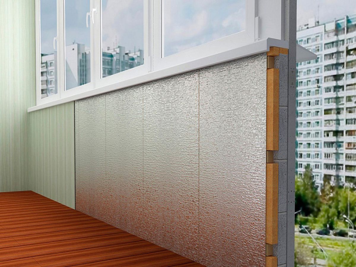Можно использовать вариант с отражающим слоем, чтобы еще лучше сохранять тепло на балконе