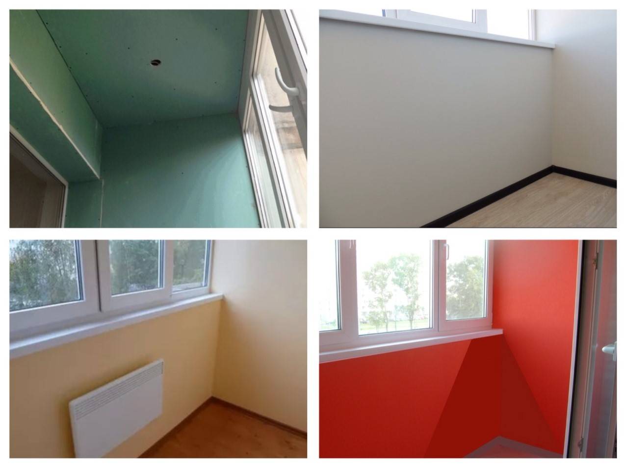 | Влагостойкий гипсокартон | Он монтируется на обрешетку, после чего заделываются все полученные стыки. Такое покрытие может быть покрыто обоями, краской или другими материалами для отделки. Этот вариант не потребует вложения большого количества средств в ремонтные работы для лоджий. |