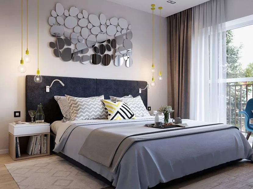 Зеркальное панно над изголовьемИсточник domoholic.ru