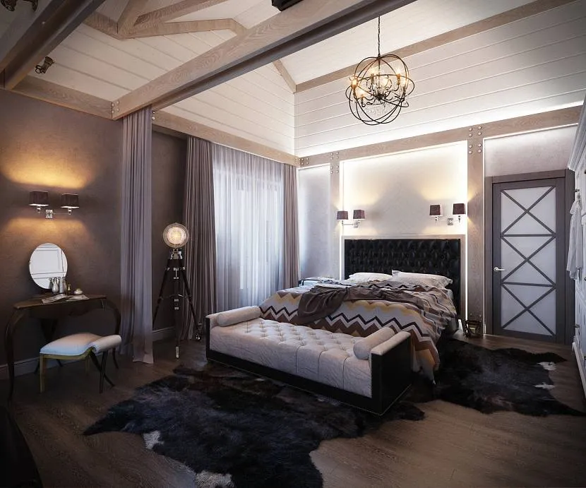 Необязательно использовать только один вариант. Для спальной комнаты можно выбирать два смежных стиля. Это позволяет выделять в помещении функциональные зоны, например, непосредственное место сна с кроватью и гардеробную.