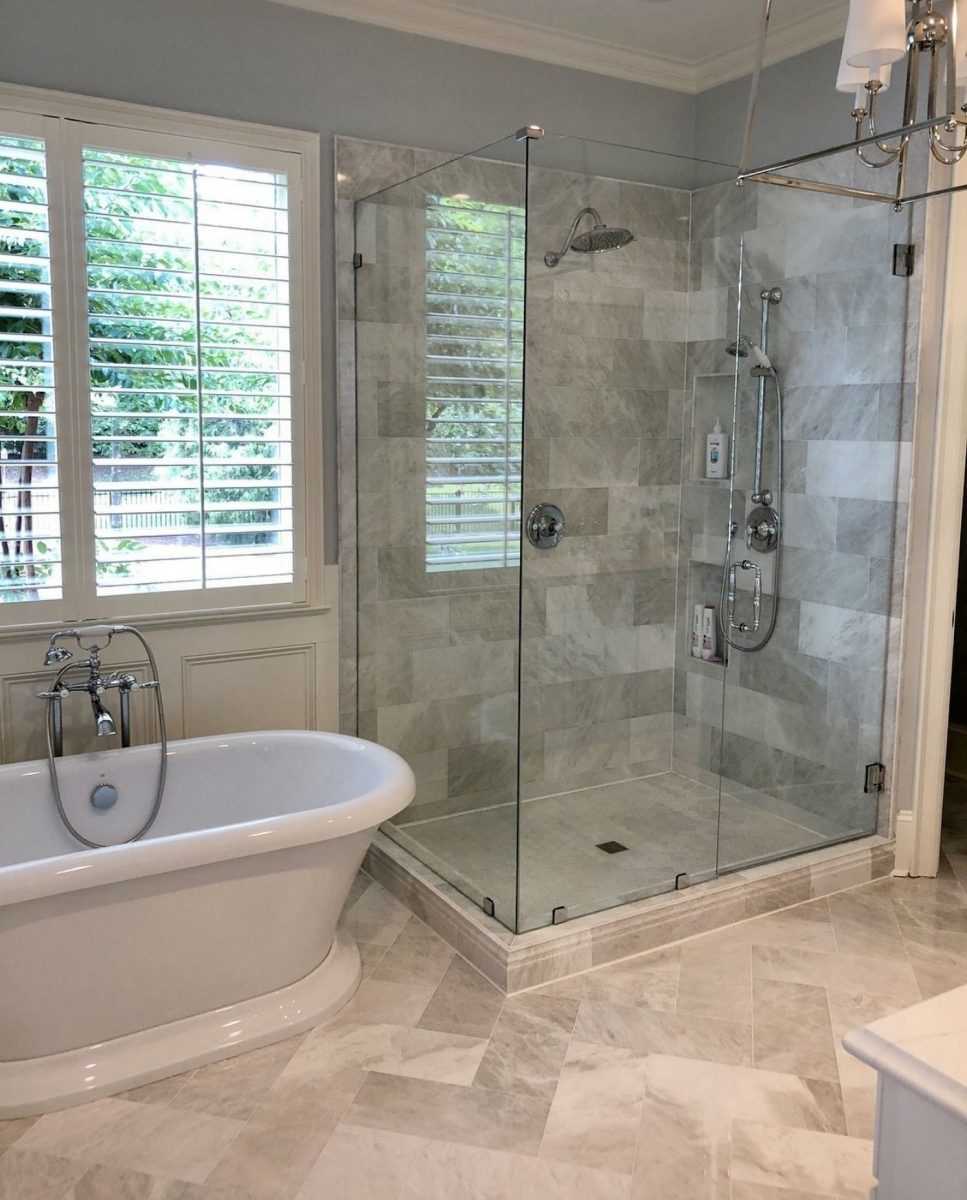 Обычно оснащают ванные душевыми кабинами. В небольшие комнаты устанавливают угловые модели. Они смотрятся стильно, не загромождают помещение. Это видно и на фото.
