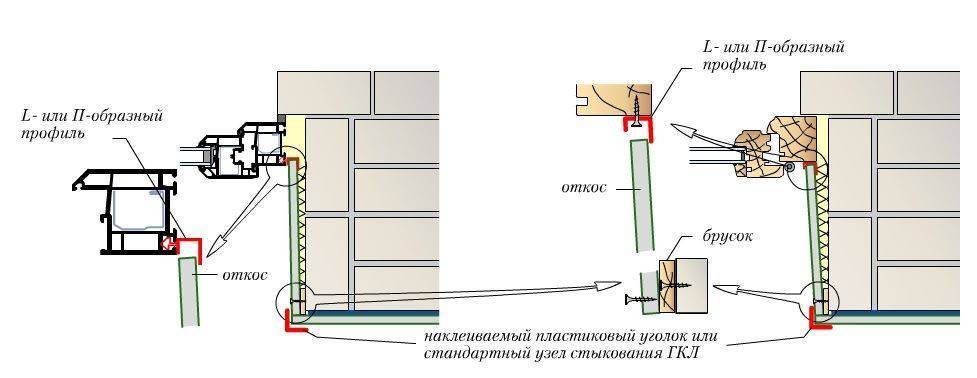 Использовать профиль при оформлении откосов не обязательно. Закрепить гипсокартон можно: