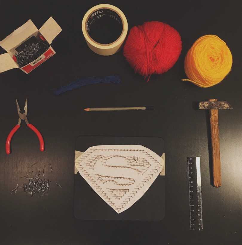 — молоток; — гвозди; — фанера; — нитки; — краска; — шаблон рисунка на бумаге или миллиметровочная бумага