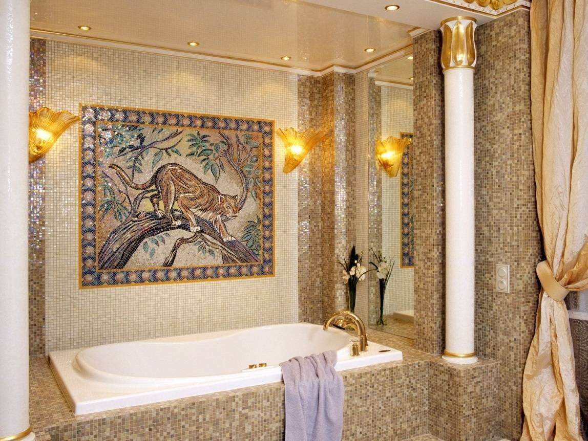 Настенное панно из керамики может располагаться как на всей стене, так и на определенных участках. А также, есть возможность приобрести изображение, которое не имеет четко очерченных границ. Это позволяет создать перспективу в дизайне.