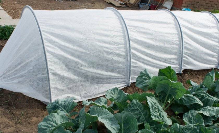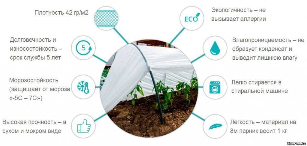 Важно! Агроволокно хуже полиэтилена сохраняет тепло. При заморозках свыше 5 градусов мороза, парник сверху дополнительно накрывают полиэтиленом. Также это поможет, когда нужно уменьшить испарение влаги