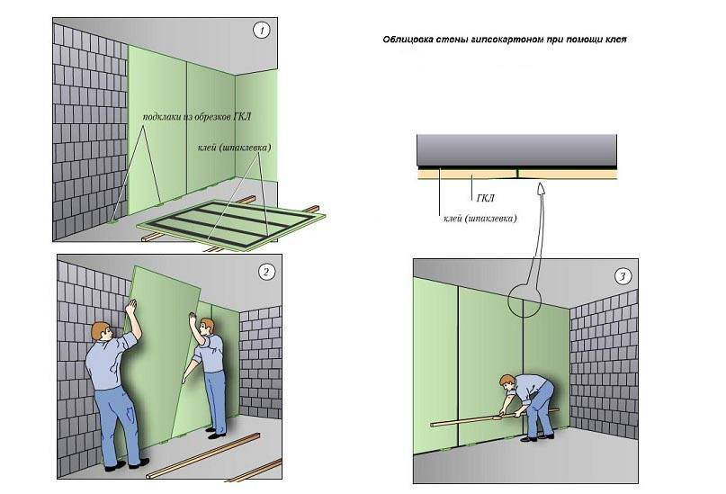 Пошаговая инструкция по приклеиванию гипсокартона к ровной стене