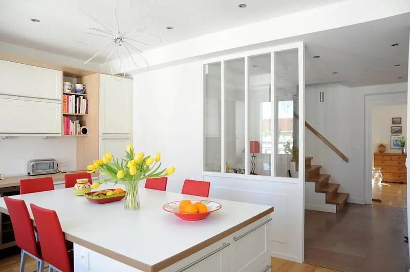 Зачем нужна перегородка в гостиной? По сути, она делает тоже самое что и стена, то есть отделяет одну комнату от другой. Однако в отличие от последней кухонная перегородка между кухней и гостиной намного тоньше и легче, то есть занимает меньше места и увеличивает жилую площадь.