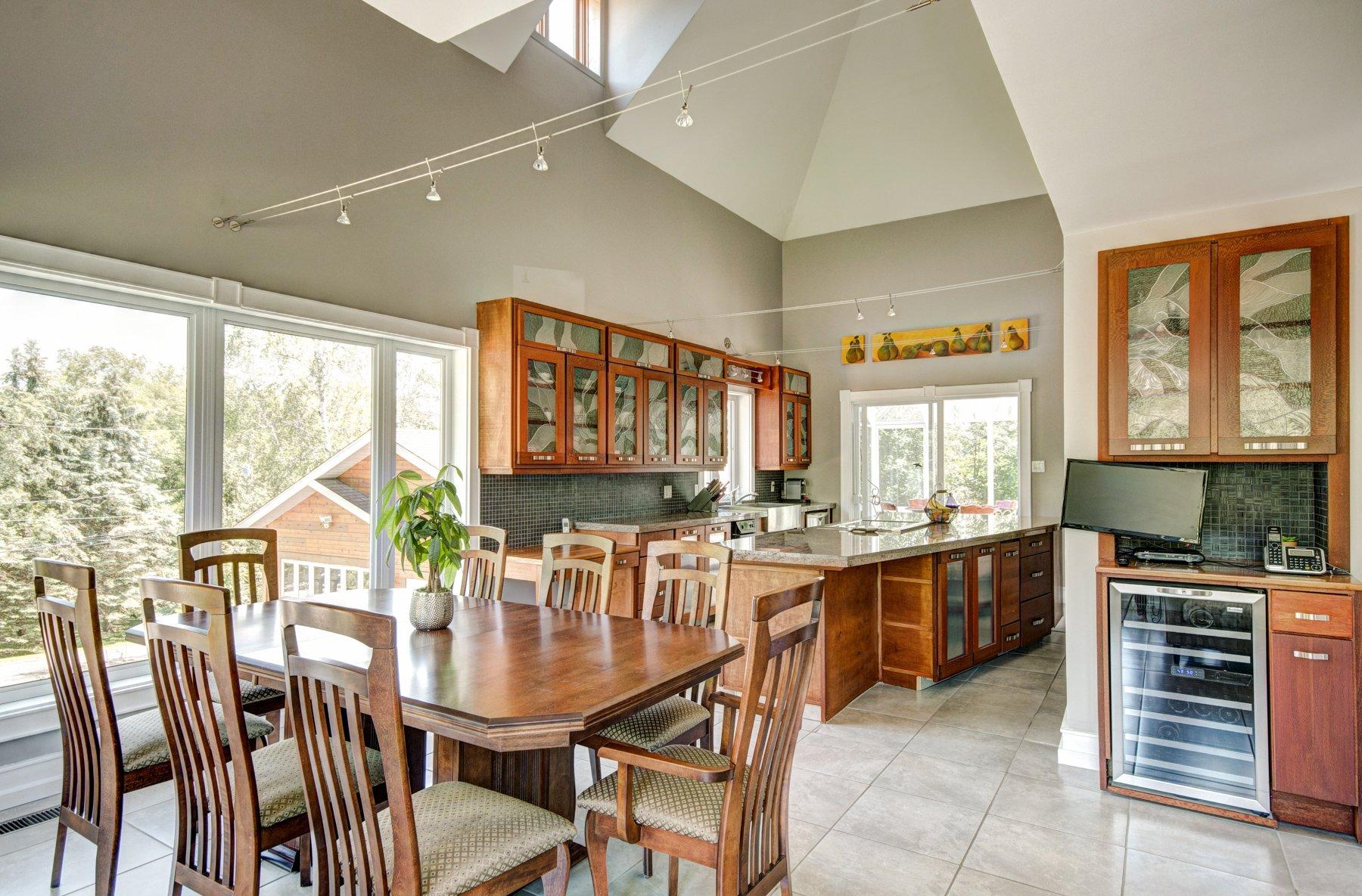 Прозрачная конструкция, размещенная между кухней и гостиной, позволяет увеличить угол обзора, расширить границы пространства и просто придать комнате дополнительного очарования.