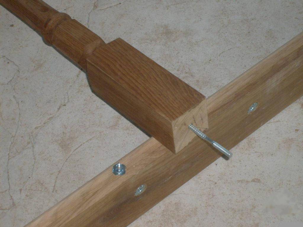 Далее наступает черед для фиксации опорных столбов (пригодится винт, шкант, шпилька). Для лучшего сцепления соотношение сечений между балясиной и столбами – 1:2.
